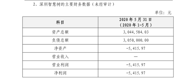 在公告中,米乐在线登录入口-米乐(中国)科技披露了深圳智慧树的主要财务数据(未经审计),如下图所示。
